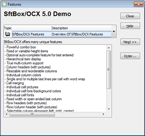 This demo application shows some of the features available in SftBox/OCX. It is also used to access other samples included in the demo or product and the online help.