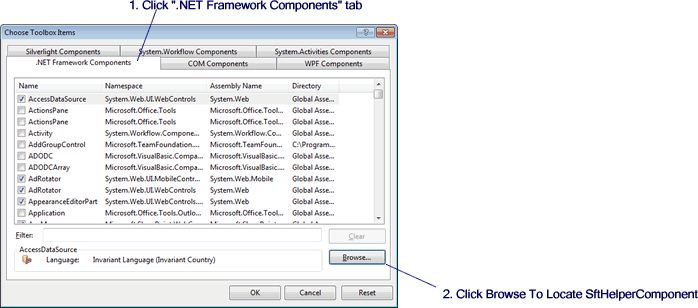 This will present the Choose Toolbox Items dialog, which is used to locate the .NET component you want to add.