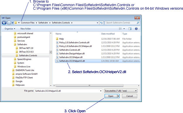 The SftHelperComponent is located at C:\Program Files\Common Files\Softelvdm\Softelvdm.Controls\.