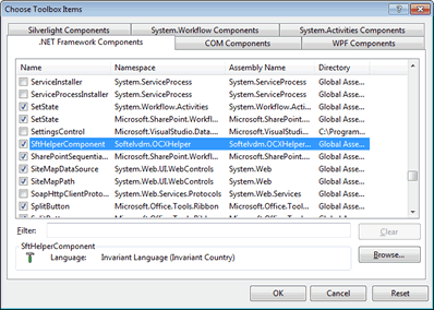 This will return you to the Choose Toolbox Items dialog which now shows the newly added assembly.