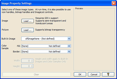 bitmap of the cell. This displays a dialog that is used to load a bitmap, GDI+ image, icon or metafile, built-in image or color sample. Some properties only allow bitmaps or only icons.