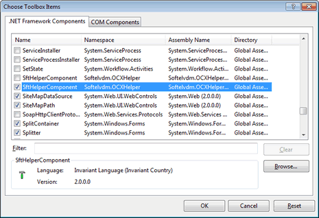 This will return you to the Choose Toolbox Items dialog which now shows the newly added assembly.