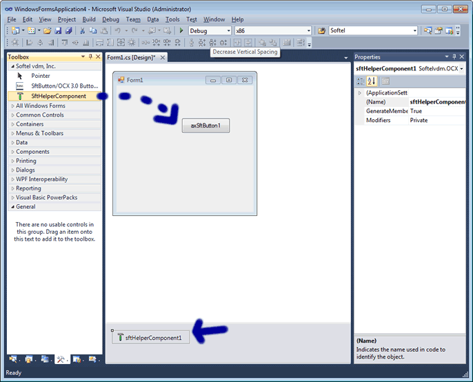 In order to be able to use .NET images, color and font properties, a small helper component must be added to each project that uses SftButton/OCX. This helper component assists in to converting OLE types to .NET types.