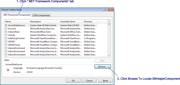 This will return you to the Choose Toolbox Items dialog which now shows the newly added assembly.