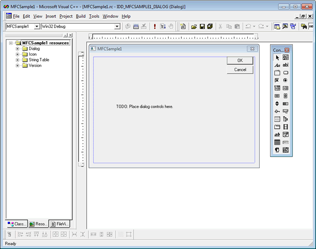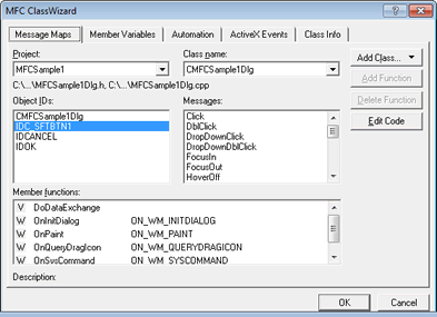 Typically, the control is used with an MFC based application (or ATL). For this example, a sample MFC based application is used, but any unmanaged C or C++ application developed using Visual C++ can use this approach. This sample is created using the MFC AppWizard. A dialog based application is generated. While it is possible to use SftButton/OCX in non-dialog windows, this is rarely the case.