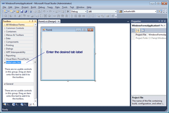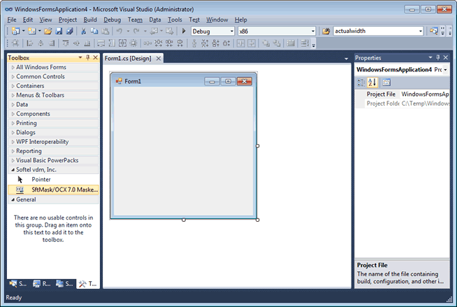For Visual Studio 2003 and above the controls are automatically added to the Visual Studio Toolbox in the toolbox group named "Softel vdm, Inc." and this section can be skipped. Otherwise, the SftMask/OCX control must be added to the toolbox before it can be used in a project.