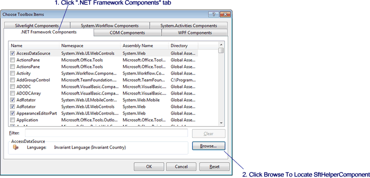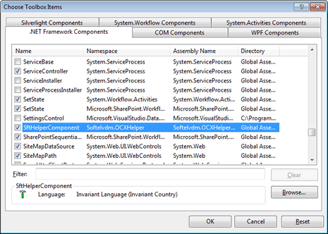 This will return you to the Choose Toolbox Items dialog which now shows the newly added assembly.