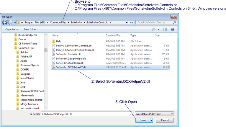The SftHelperComponent is located at C:\Program Files\Common Files\Softelvdm\Softelvdm.Controls or C:\Program Files (x86)\Common Files\Softelvdm\Softelvdm.Controls on 64-bit Windows versions.