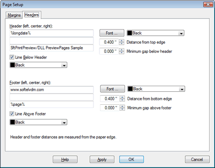 The built-in Page Setup Dialog allows an end-user using your application to customize the output's appearance, such as header titles, footers, margins, etc.