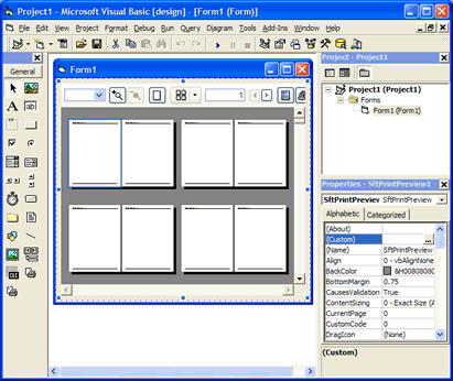 Now the control can be added to a form by clicking on the SftPrintPreview/OCX button of the Toolbox.