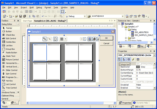 Typically, the control is used with an MFC based application (or ATL). For this example, a sample MFC based application is used, but any unmanaged C or C++ application developed using Visual C++ can use this approach. This sample is created using the MFC AppWizard. A dialog based application is generated. While it is possible to use SftPrintPreview/OCX in non-dialog windows, this is rarely the case.