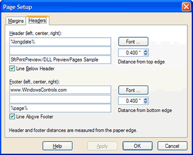 The built-in Page Setup Dialog allows an end-user using your application to customize the output's appearance, such as header titles, footers, margins, etc.