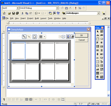 Select the control "SftPrintPreview/OCX 1.0 Print Preview Control" by highlighting it and click OK. This adds the control to the dialog. If an error message is displayed once you click OK, the product SftPrintPreview/OCX is not correctly installed or the control may have been unregistered accidentally. Quit Visual C++ and use the entry Maintenance, Register SftPrintPreview OCX in Windows Registry in the SftPrintPreview/OCX 1.0 program group to register the control. Restart Visual C++ and try to add the control to the dialog again.