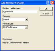 Finally, you will be prompted for the member variable name. Enter m_Preview1.