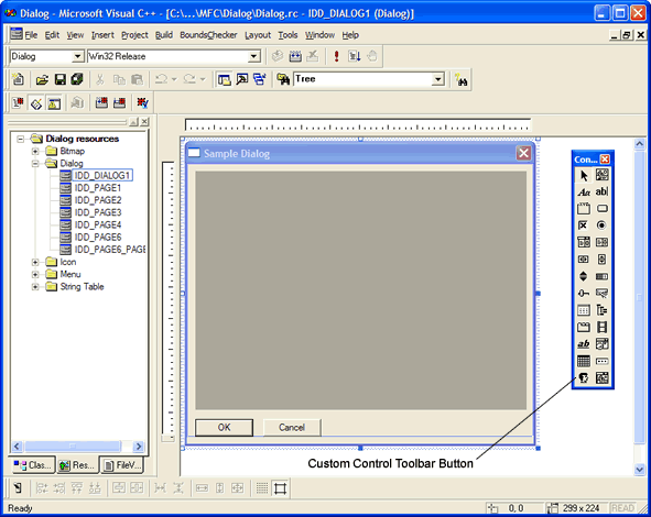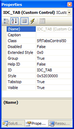 Once a custom control has been added to a dialog, you can edit the control properties by using the View, Properties... menu command.