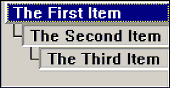 CSftTree m_Tree; int index; m_Tree.SubclassDlgItem(IDC_TREE, this); // Connect C++ object to window m_Tree.SetShow3D(TRUE); // Use 3D display mode index = m_Tree.AddString("The First Item"); index = m_Tree.AddString("The Second Item"); m_Tree.SetItemLevel(index, 1); index = m_Tree.AddString("The Third Item"); m_Tree.SetItemLevel(index, 2); m_Tree.RecalcHorizontalExtent(); // For optimal horizontal scrolling
