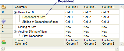 A dependent is an item which has a parent. The item is said to be a dependent of the parent item. Dependents can be parent items themselves or leaf items. A dependent cannot be at the root level.