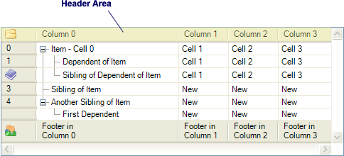 The header area contains the column headers and the associated row headers.