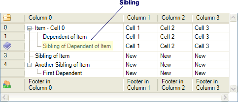 A sibling is an item which precedes or follows another item on the same level with the same parent. An item can have zero or more sibling items. Sibling items can be parent and leaf items.