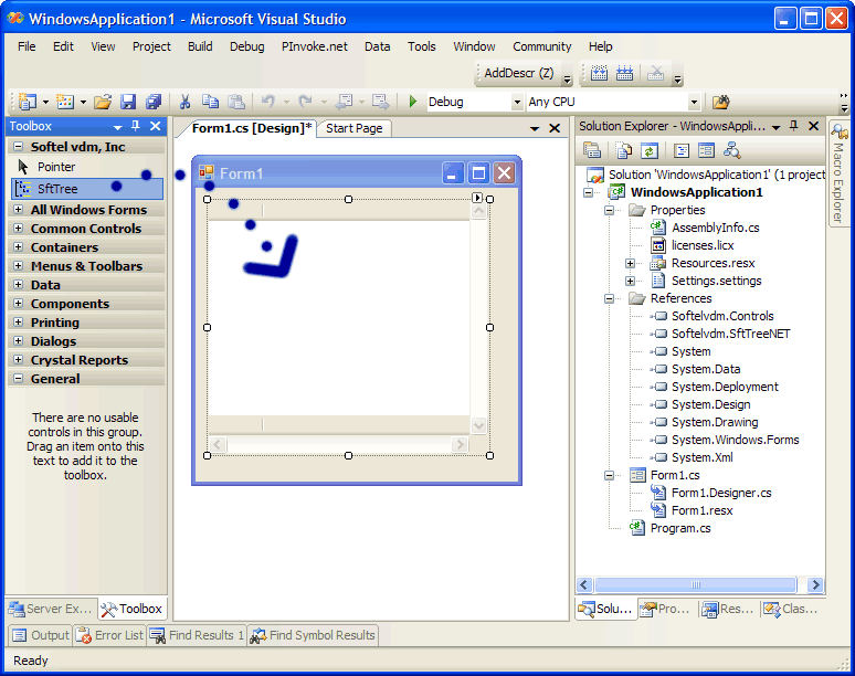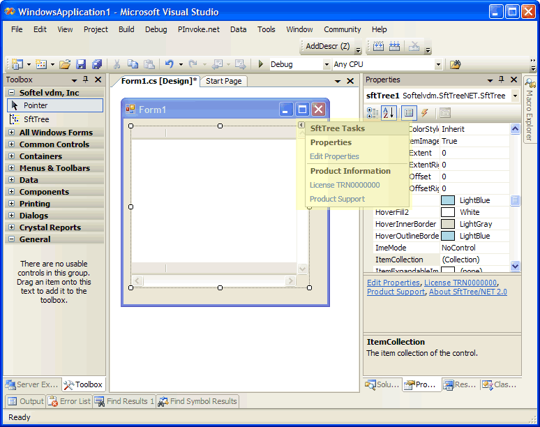 The control is automatically added to your Toolbox in Visual Studio and is automatically registered in the GAC (Global Assembly Cache) during installation of SftTree/NET. Please see Distributing SftTree/NET for information on how to distribute the control with your application.