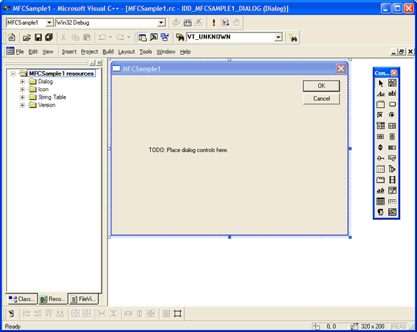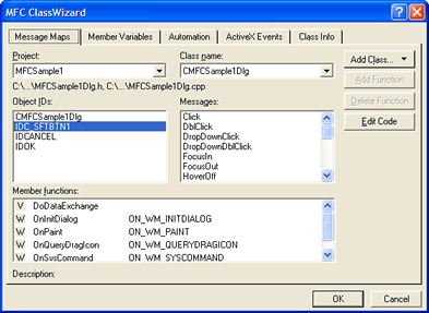Typically, the control is used with an MFC based application (or ATL). For this example, a sample MFC based application is used, but any unmanaged C or C++ application developed using Visual C++ can use this approach. This sample is created using the MFC AppWizard. A dialog based application is generated. While it is possible to use SftButton/OCX in non-dialog windows, this is rarely the case.