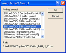 From the displayed popup menu, select Insert ActiveX Control..., which will display the following dialog:
