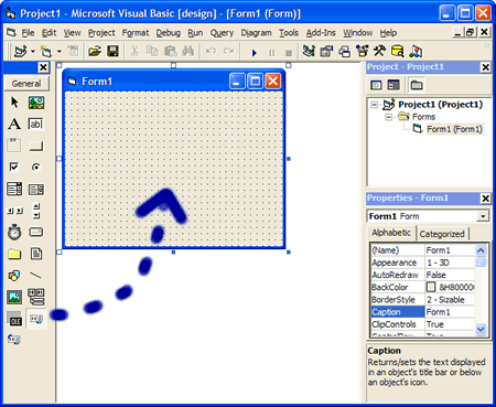 In this example, the control is initialized at run-time using code. Of course it is also possible (and much easier) to set up all properties using the property pages. You can access the property pages by right-clicking on the control and select the Properties... entry of the popup menu.